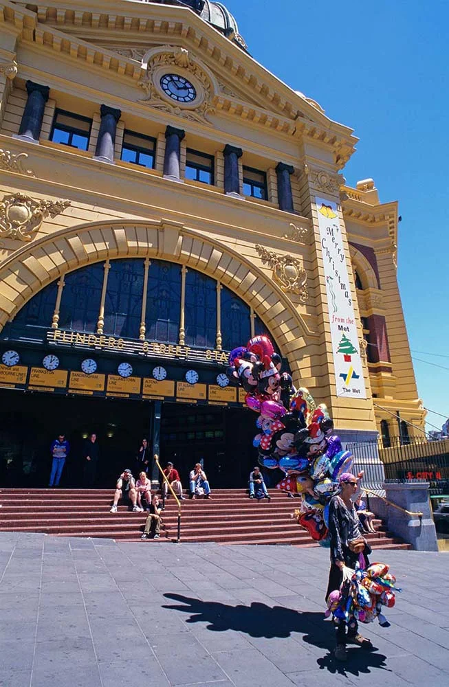 Balloon salesperson at Flinder Station, Melbourne, Australia